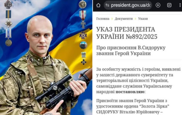 Президент України присвоїв звання Героя України загиблому захиснику з Тернопільщини Віталію Сидоруку