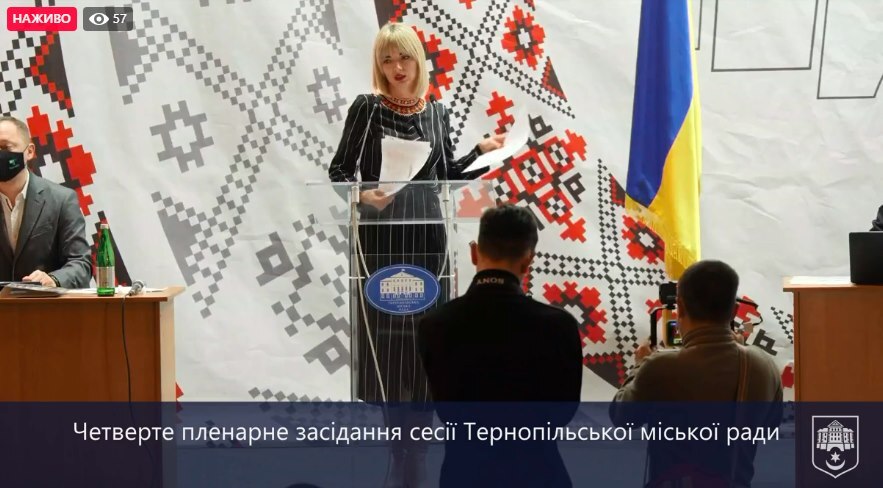 Фото з трансляції сесії на сторінці Тернопільської міської ради у соціальній мережі «Фейсбук»