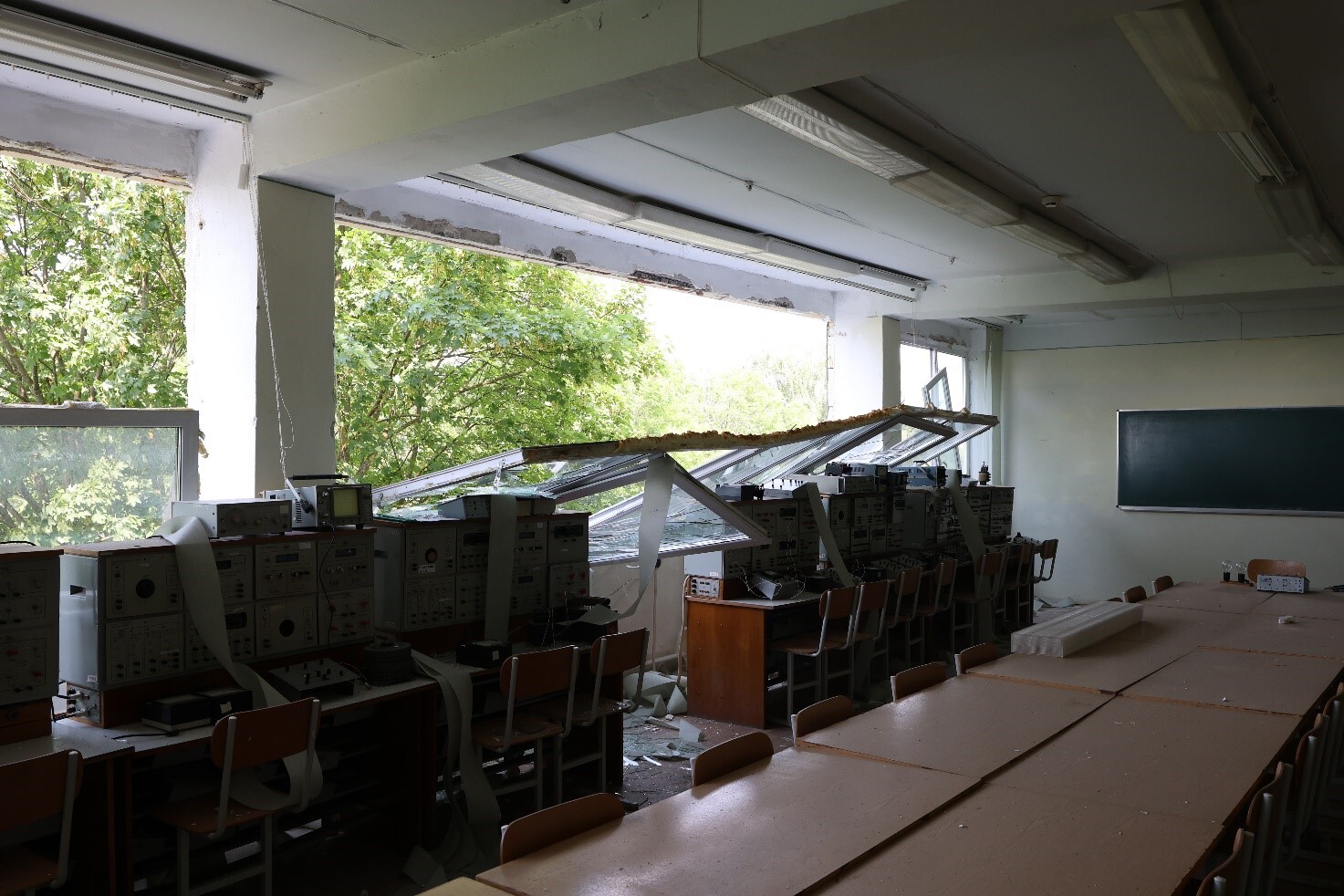 — пошкоджено до 95% аудиторій, навчальних лабораторій і приміщень кафедр;