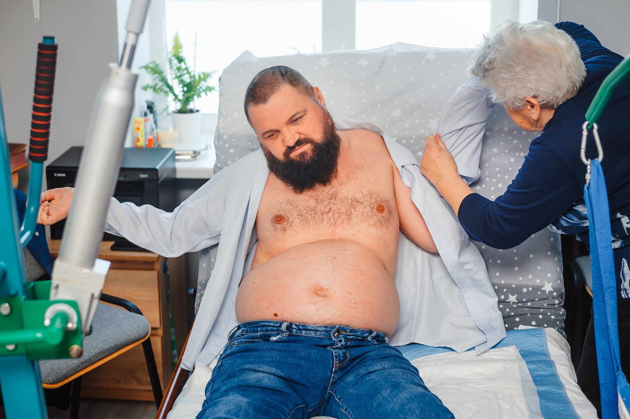 Я намагався кадр за кадром показати підготовку до робочого дня людини з інвалідністю. Я не соромлюсь показати світлини де я, 38-ми річний чоловік в підгузнику, де мене вмивають, одягають і садять в крісло. І лише після цього, я можу самостійно працювати. На всіх світлинах видно руки моєї мами, яка мені в усьому допомагає. Це історія не про героїзм і не про жалість, це реальність без прикрас і бажання жити та працювати, щоб щось хороше залишити в цьому світі після себе, – написав Іван Космина на своїй фейсбук-сторінці.