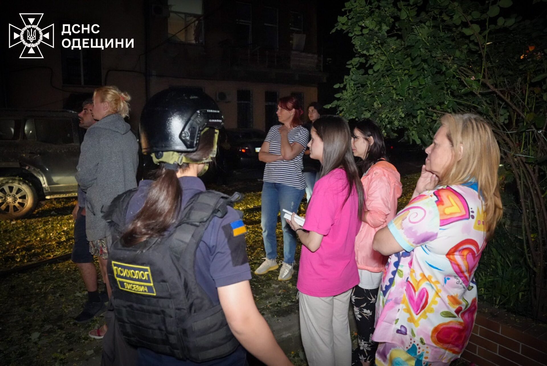 На місці частково зруйнованого 4-поверхового житлового будинку ДСНС розгорнули пункт Незламності.