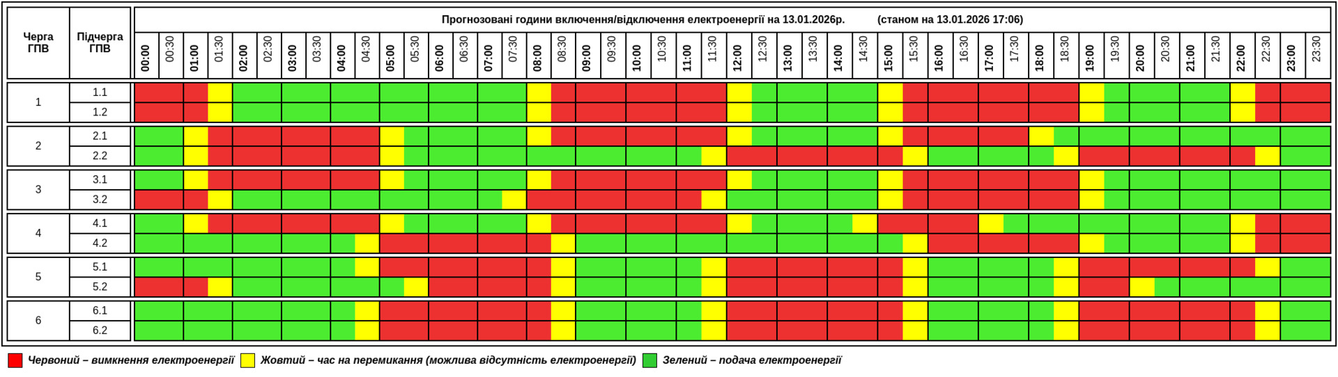 Публікуємо графік, який відомий станом на вечір 17:06: