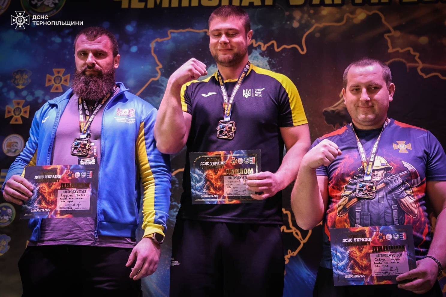 В особистому заліку відзначився представник Тернопільщини. У боротьбі на ліву руку у ваговій категорії понад 100 кг пожежний-рятувальник 5-ї державної пожежно-рятувальної частини 3-го державного пожежно-рятувального загону Головного управління ДСНС у Тернопільській області, сержант служби цивільного захисту Андрій Савчук здобув третє місце.