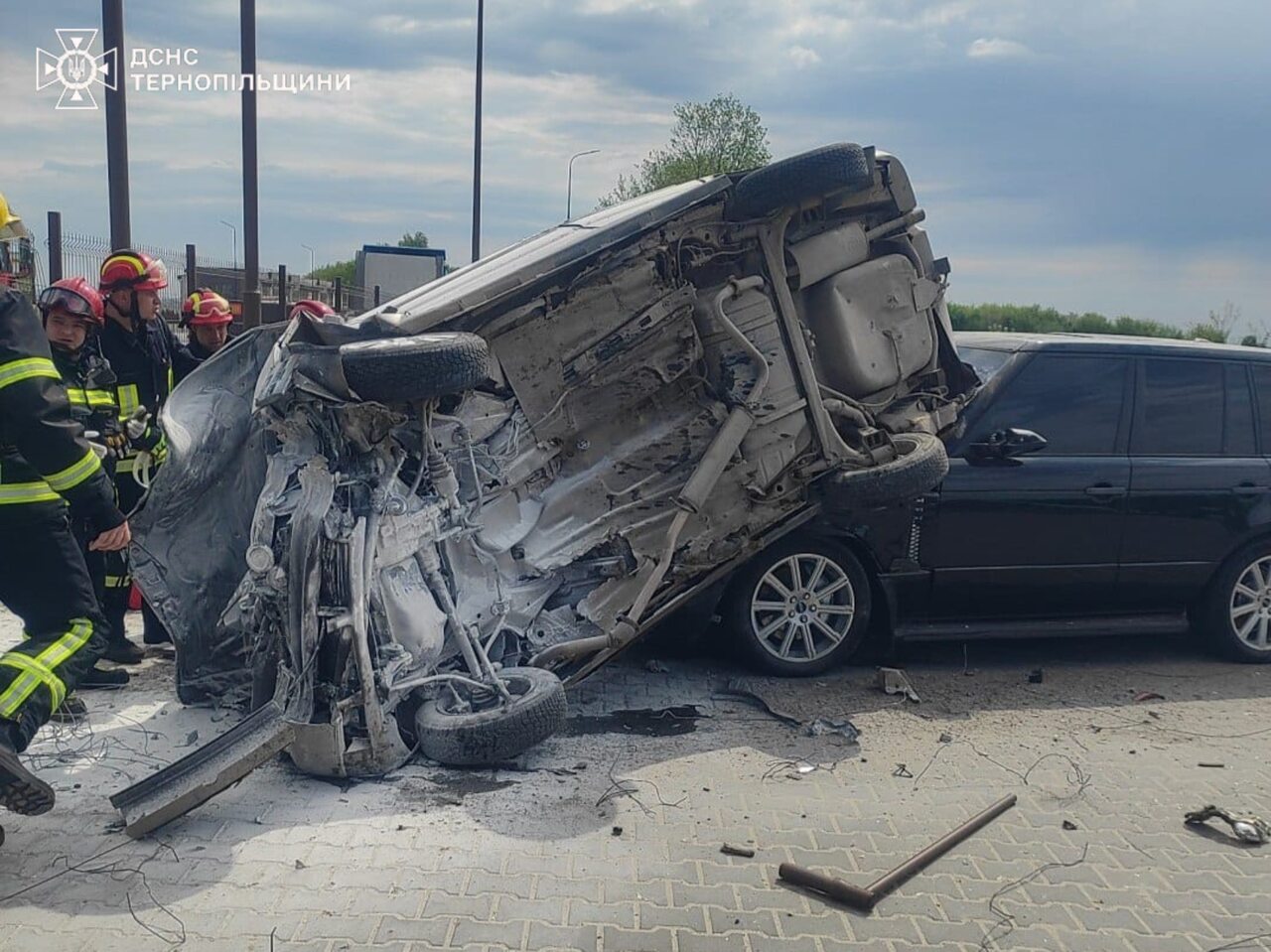 Рятувальники деблокували пораненого: у Тернополі перекинулось авто (фото)