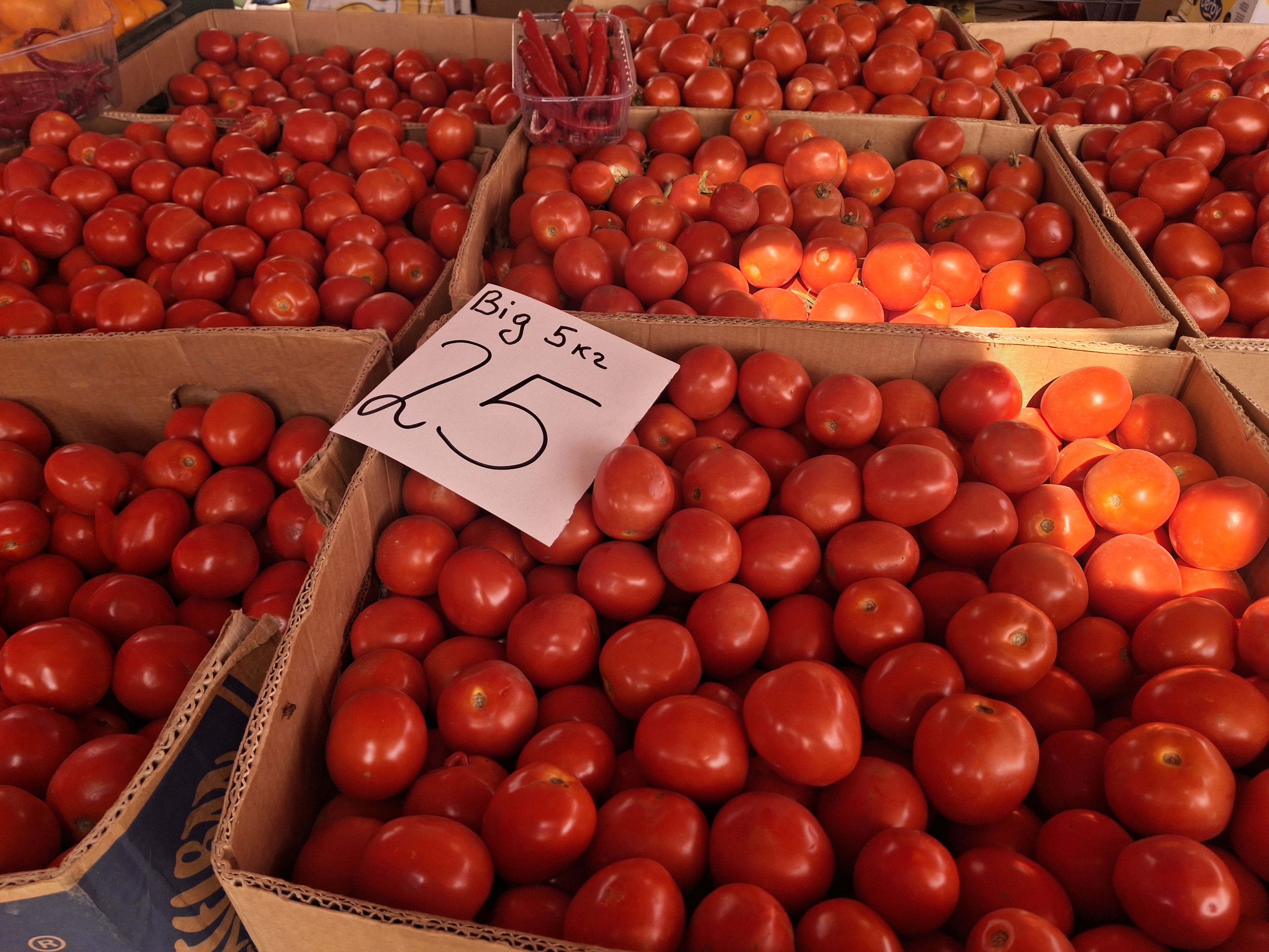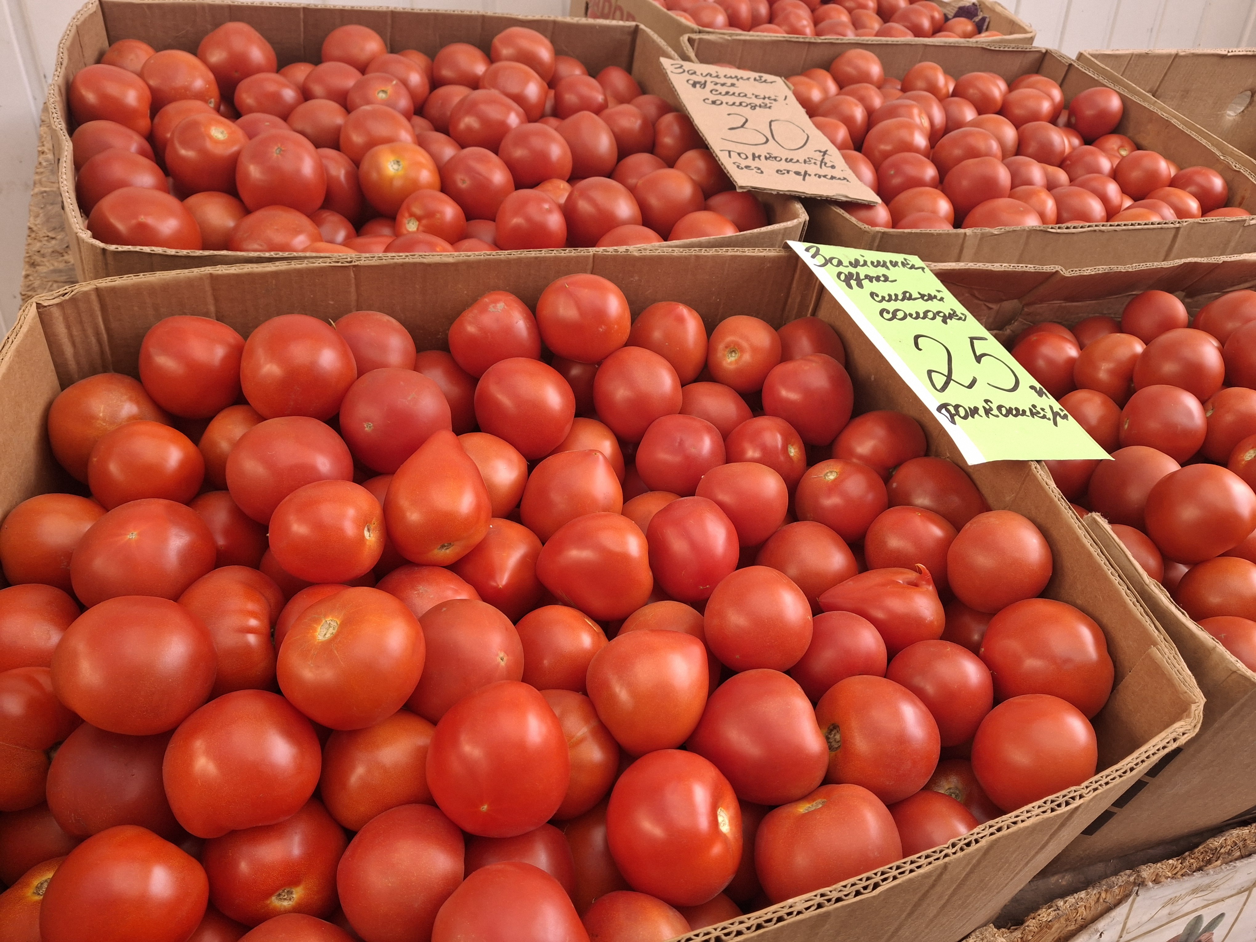 Нагадаємо, ще два тижні тому кілограм помідорів коштував вдвічі дорожче – по 55–70 грн/кг. Зараз же ціну знизили до 30 гривень за кілограм. Якщо ж купувати гуртом, то можна знайти і по 25 грн/кг.