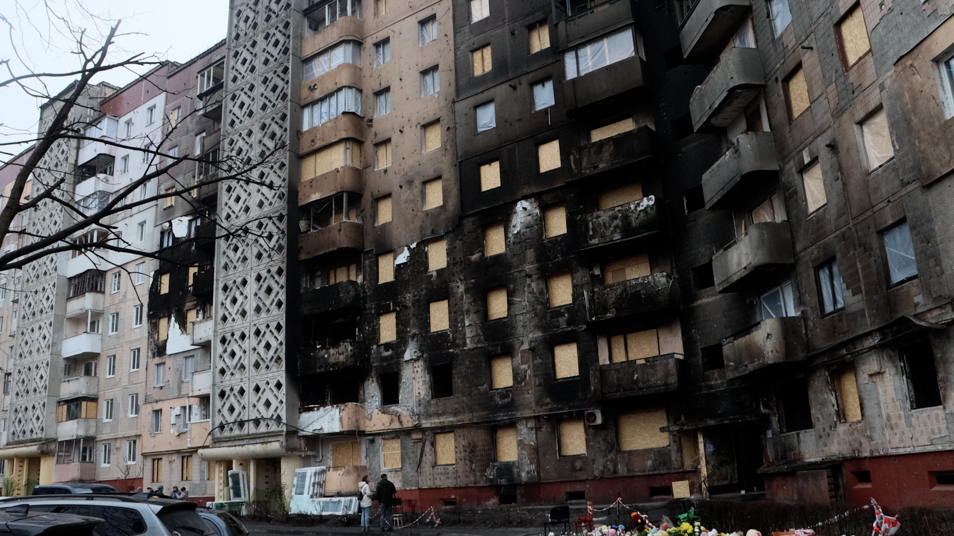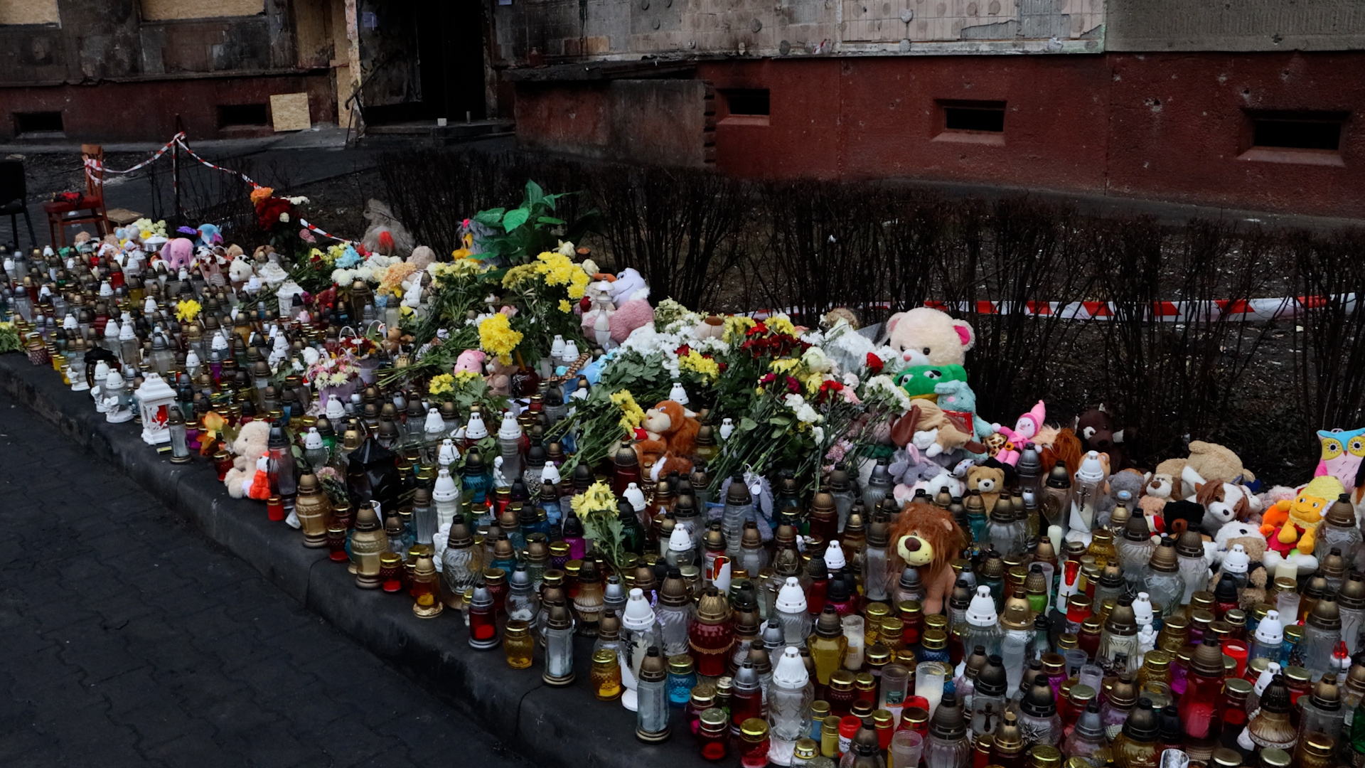 У будинку на вулиці 15 Квітня продовжують встановлювати вікна, в деяких з них вже горить світло. Квартири, які зруйнувало вогнем та вибухами, досі розчищають. Перед будівлею очевидці подій та постраждалі досі обговорюють те, що сталося. Одна з мешканок будинку досі шукає свого зниклого котика. Локація з квітами і лампадками стала ще більшою.