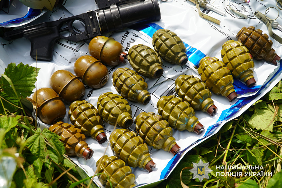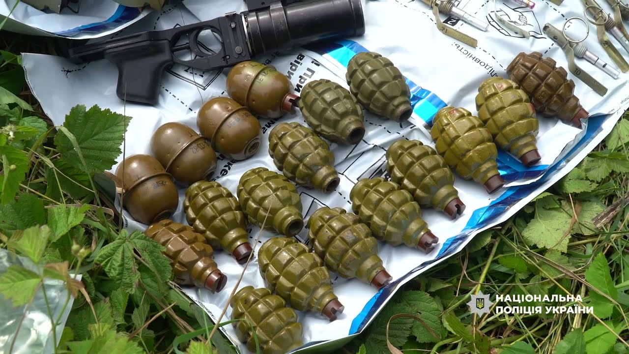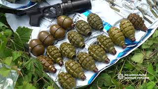 За словами начальника відділу управління карного розшуку ГУНП в Тернопільській області Івана Бачинського, під час огляду лісосмуги на одній із вулиць Тернополя поліцейські виявили замаскований схрон зі зброєю, який належав одному зі спільників. У ньому зберігалося: 14 корпусів гранат Ф-1, 4 корпуси РГД-5, підствольний гранатомет ГП-25, 10 пострілів ВОГ-25, 18 запалів типу УЗРГМ, саморобний вибуховий пристрій типу «Хатабка», 5 реактивних протитанкових гранат РПГ-22.