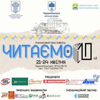 Книжковий фестиваль «Читаємо в 10-й» вдруге проходитиме в Тернопільській загальноосвітній школі І–ІІІ ступенів №10 з 21 по 24 квітня. Про це повідомили на сайті міської ради.