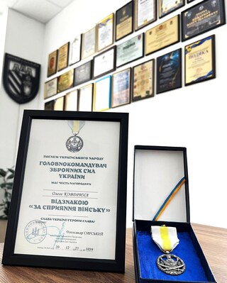 Маємо ще одну надзвичайно важливу й цінну для нас відзнаку — нагрудний знак Головнокомандувача Збройних Сил України “За сприяння війську”. Особливо символічно й зворушливо отримати цю нагороду з рук наших воїнів-земляків.