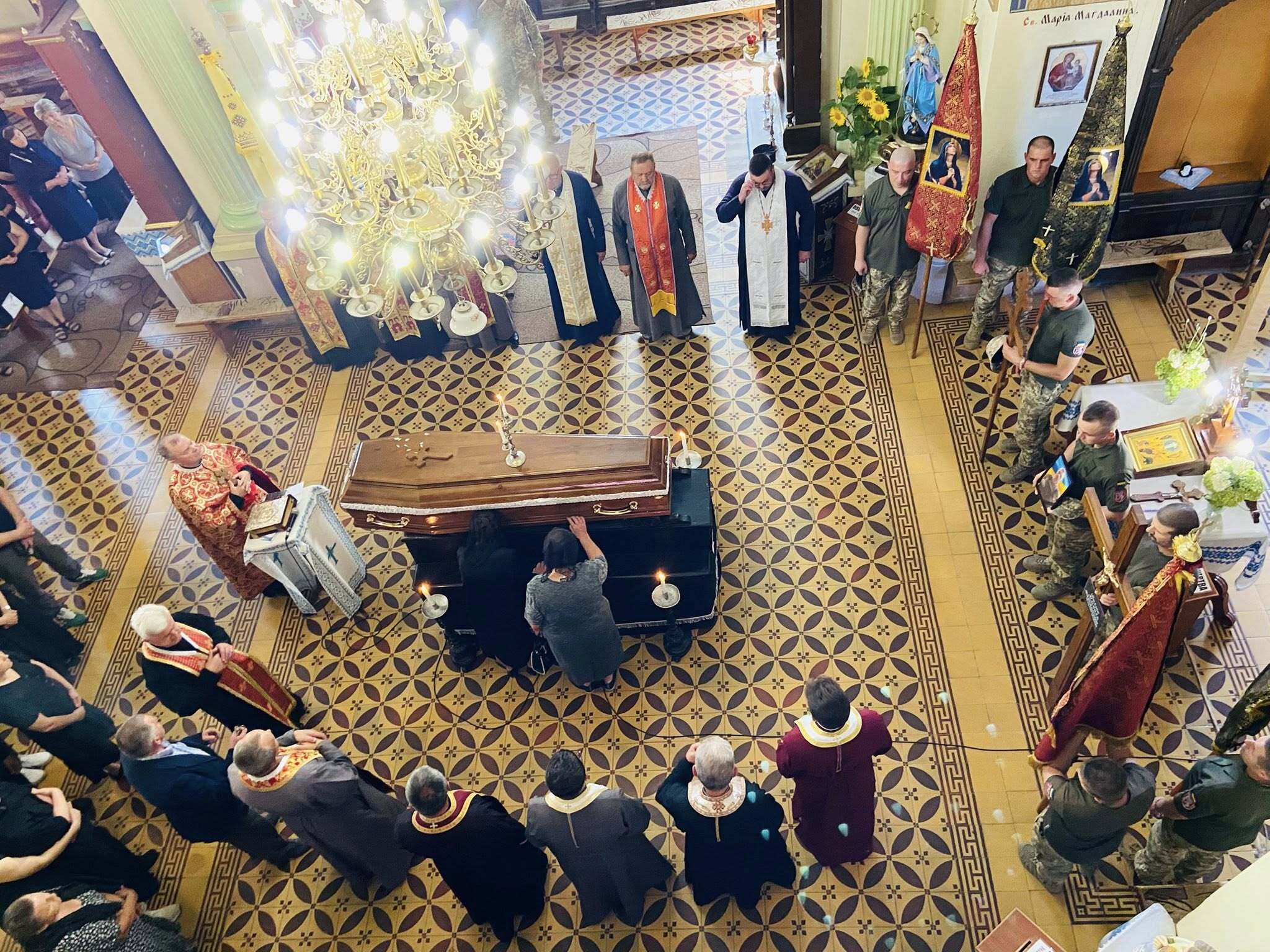 Прощання з загиблим Героєм Володимиром Косюком відбувся 7 серпня у Церкві Святої Трійці в Бережанах. Про це повідомили у пресслужбі міської ради.