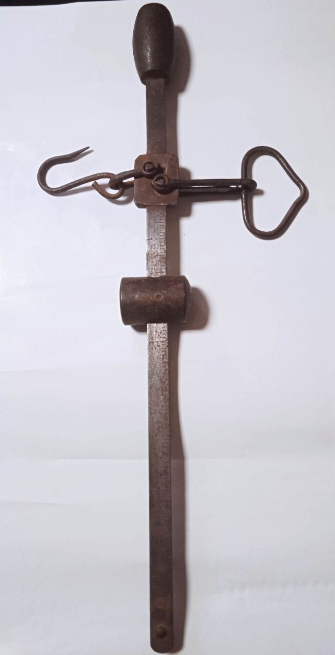 Це пристрій для визначення маси товарів, використовувався у торгівлі та у побуті. Має максимальну межу зважування до 10 кг. Являє собою горизонтально розміщений металевий стержень із закріпленою петлею зверху, та гачок для зважування знизу. Предмет належав кременчанину Петру Яловському, - йдеться у повідомленні.