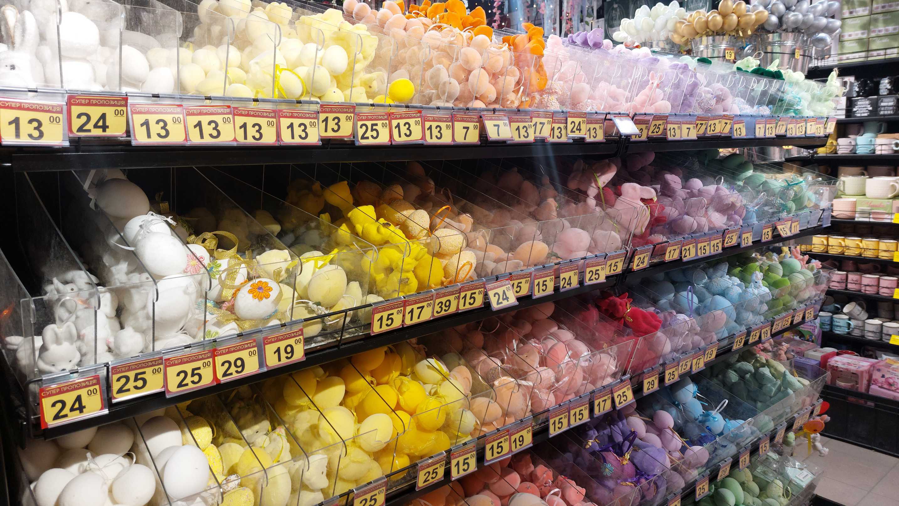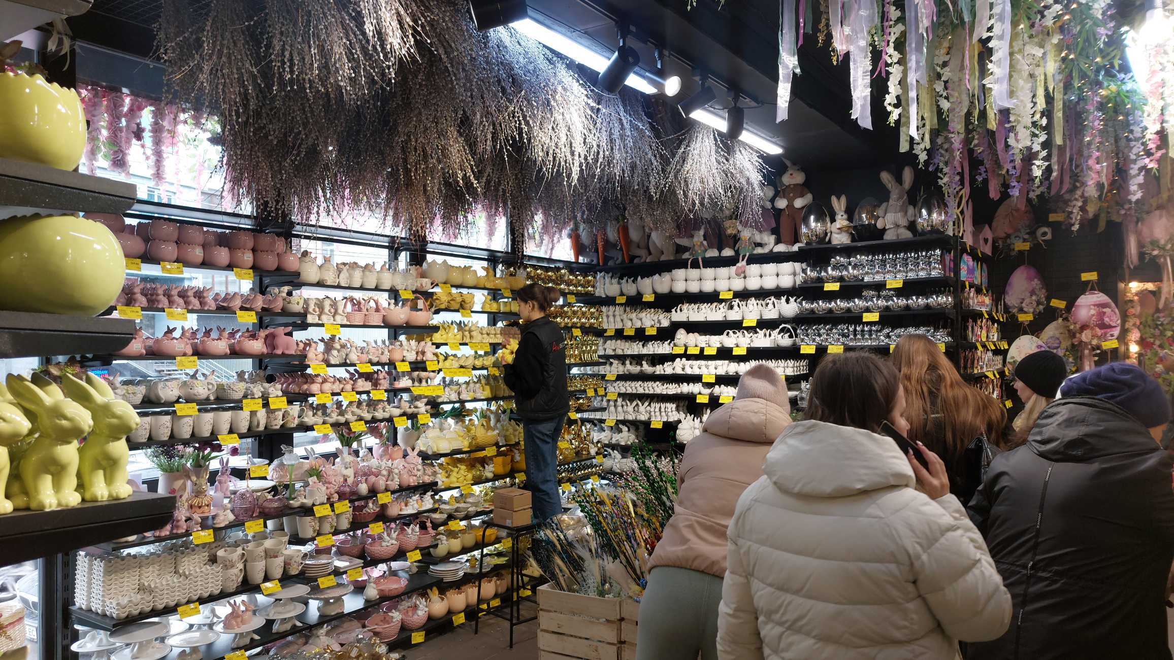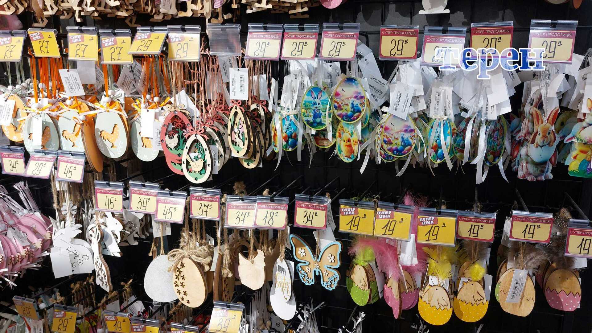У місцевому магазині декору покупців чимало. Одними з найпопулярніших прикрас є різноманітні фігурки у вигляді яєць, курчат, кроликів, метеликів. Ціна таких фігурок від 12 гривень до 800 за одну штуку, – все залежить від розміру виробу та матеріалу, з якого він зроблений.