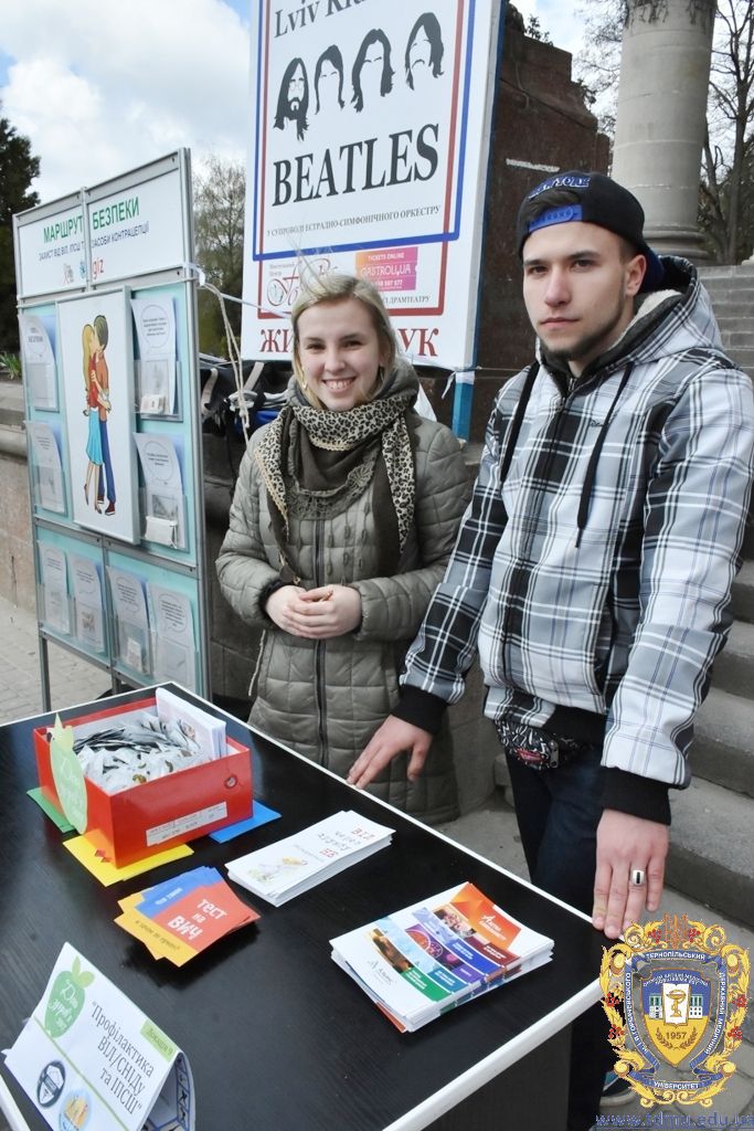 Студенти Тернопільського державного медичного університету – активні учасники і організатори загальноміських заходів, присвячених темі здоров’я. Зокрема нещодавно на Театральному майдані студенти-медики спільно з Тернопільським міським центром здоров’я та Товариством «Червоний Хрест» організували акцію, під час якої вчили громадян міста вести здоровий спосіб життя, робили певні обстеження.
