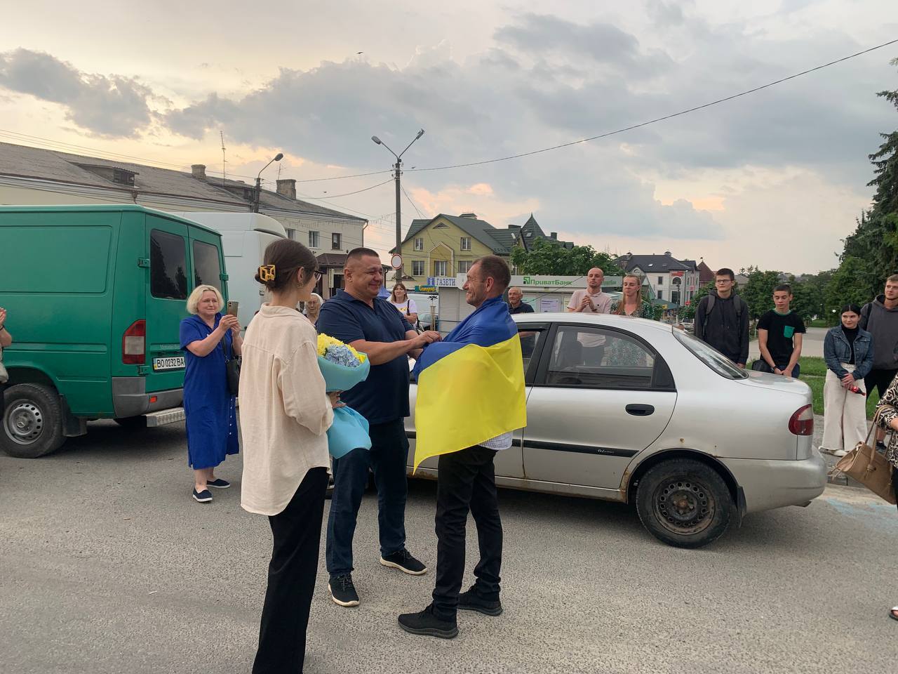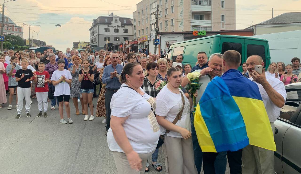 «Теплі обійми та море квітів»: у місті на Тернопільщині зустріли звільненого з полону захисника (фото)