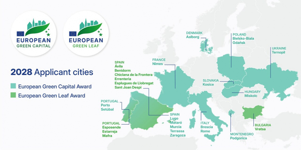 Загалом у категорії міст із населенням понад 100 тисяч мешканців, які змагаються за звання «Європейська зелена столиця 2028», представлені 17 міст: Aalborg (Данія), Bielsko-Biała та Gdańsk (Польща), Brescia та Rome (Італія), Košice (Словаччина), Lugo, Mataró, Murcia, Terrassa та Zaragoza (Іспанія), Miskolc (Угорщина), Nîmes (Франція), Podgorica (Чорногорія), Porto і Setúbal (Португалія), а також Ternopil (Україна).