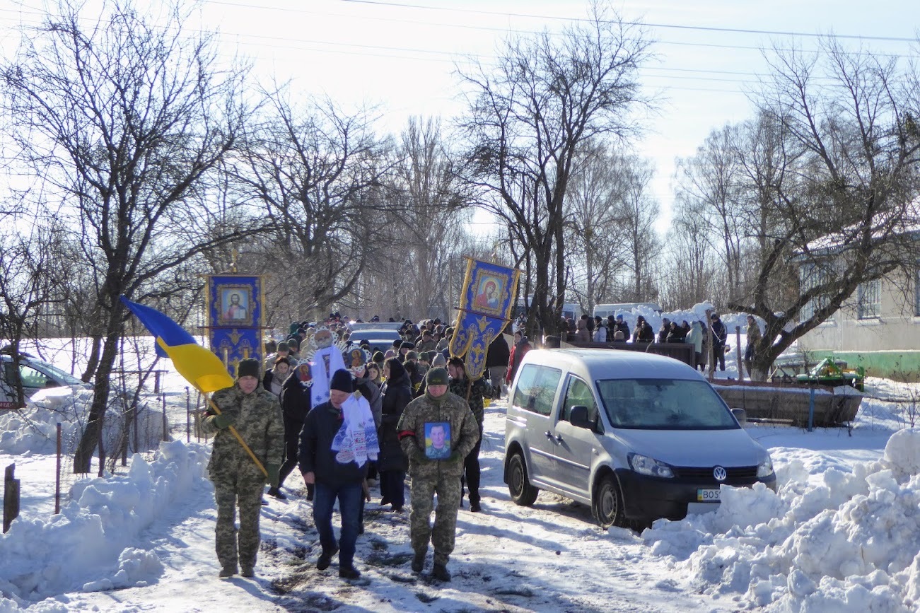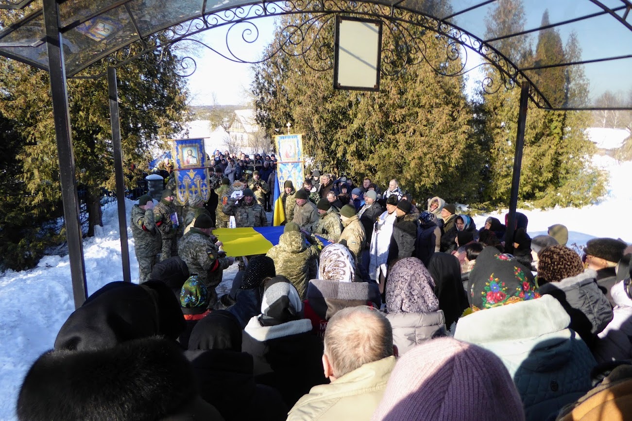 Прощання з Героєм розпочалося на подвірʼї його рідного дому в селі Городище. Звідти траурна процесія вирушила до церкви Успіння Пресвятої Богородиці, де пройшла заупокійна служба за загиблим бійцем.