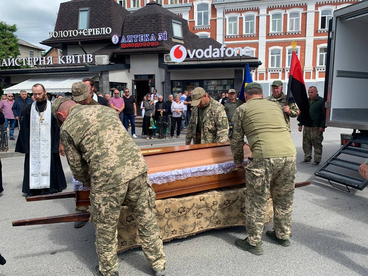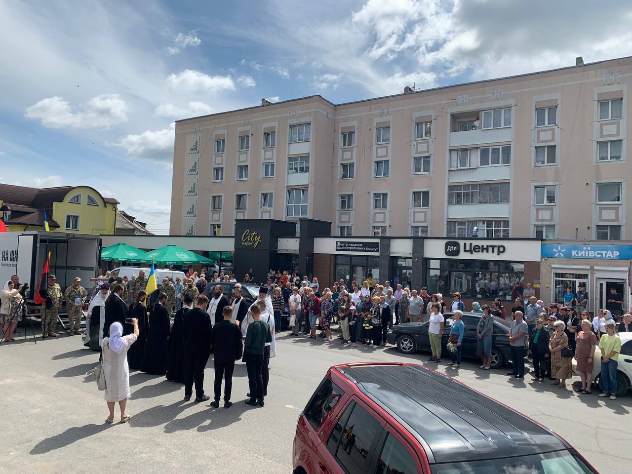 Після громадської панахиди біля Меморіалу поховальна процесія рушила до Храму Святого Миколая, де відбувся чин похорону.