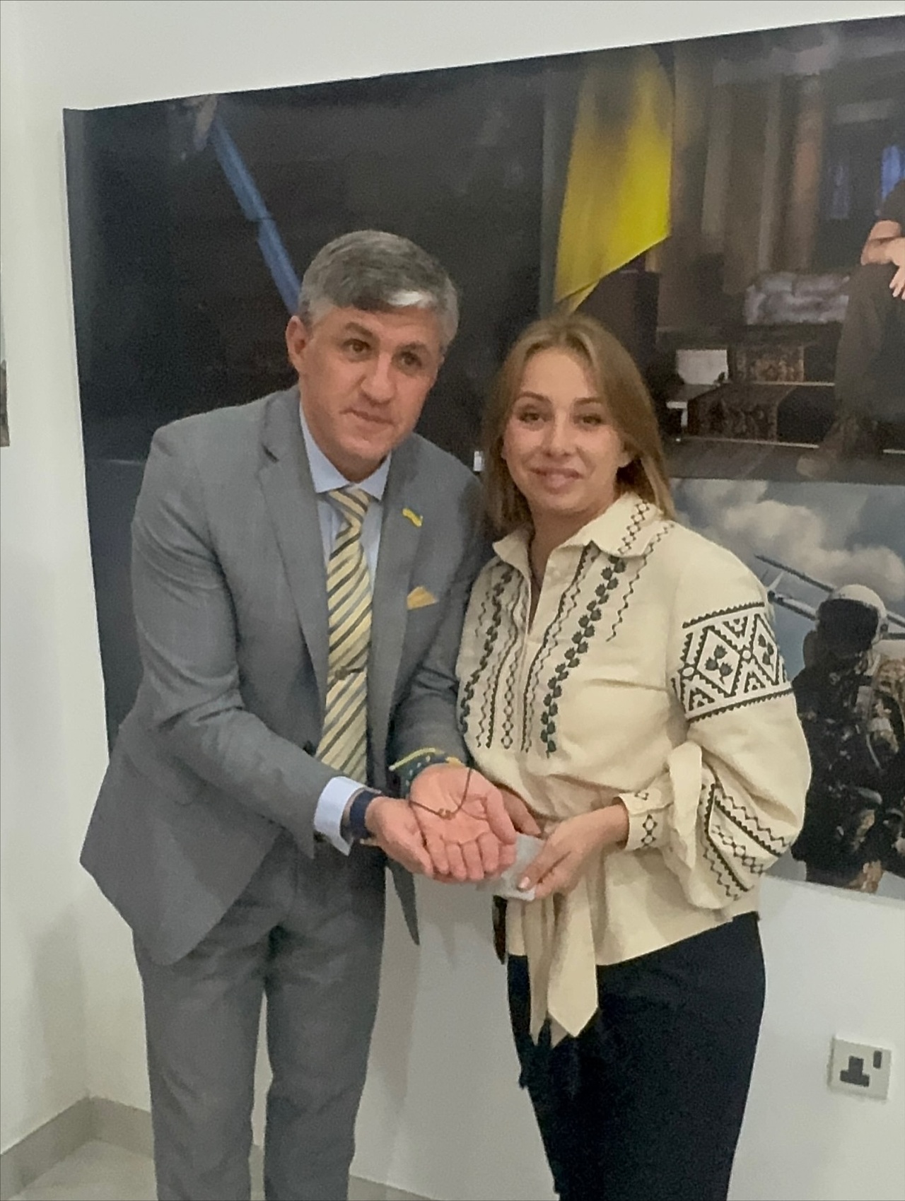 Тернопільська волонтерка передала послу України в ОАЕ прикраси, виготовлені з відпрацьованих гільз (фото)