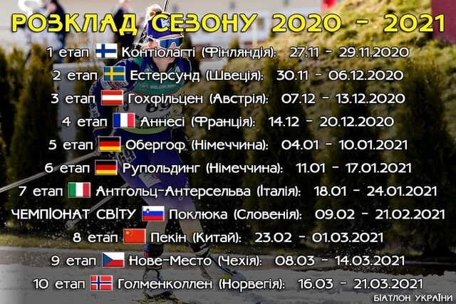 Попри те, що у світі все ще вирує коронавірус, міжнародні асоціації складають графіки змагань сезону 2020/2021. Чи не з перших відомий графік етапів з біатлону.