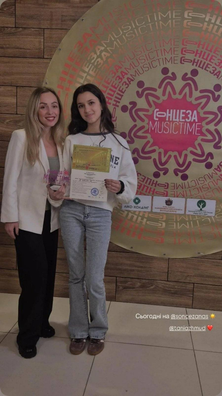 Також із успіхом виступили вихованки вокально-хорового відділу школи на Всеукраїнському конкурсі вокального мистецтва «Сонце ЗА music time», який проходив у Києві за підтримки Міністерства культури України. Зокрема, Вероніка Осадчук та Анна Голомша стали лауреатками ІІІ премії. Викладачка - Тетяна Жмуд, концертмейстерка - Ірина Томин.