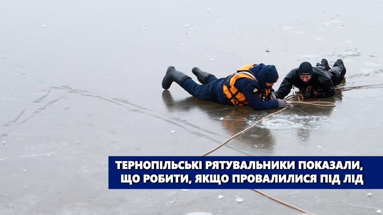 Тернопільські рятувальники показали, що робити, коли провалилися під лід (відео)