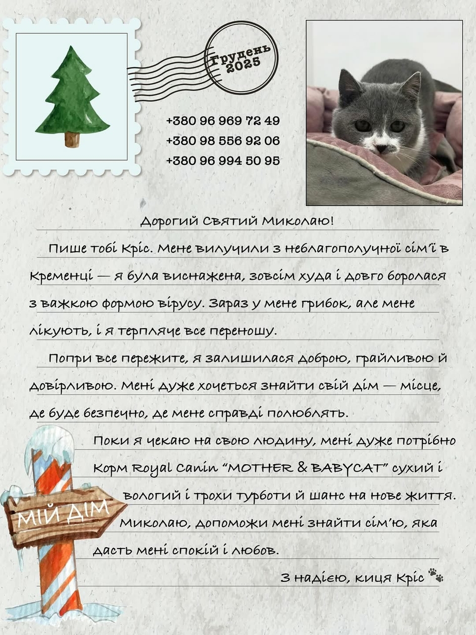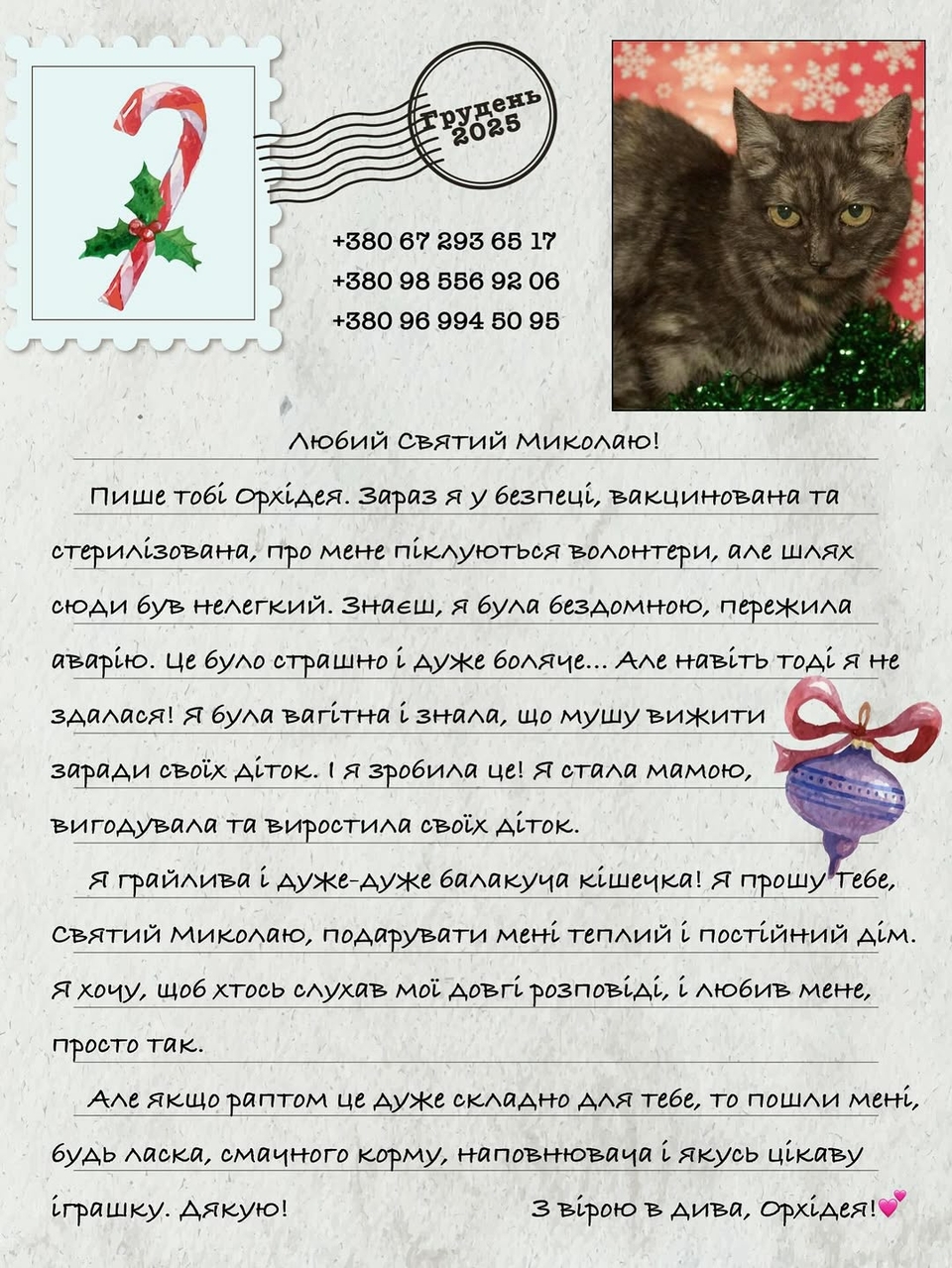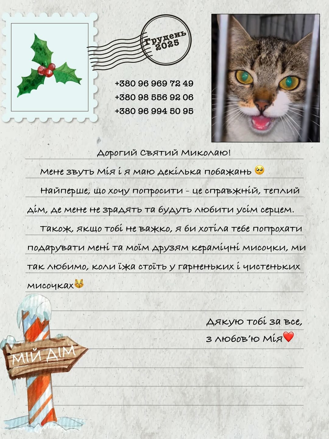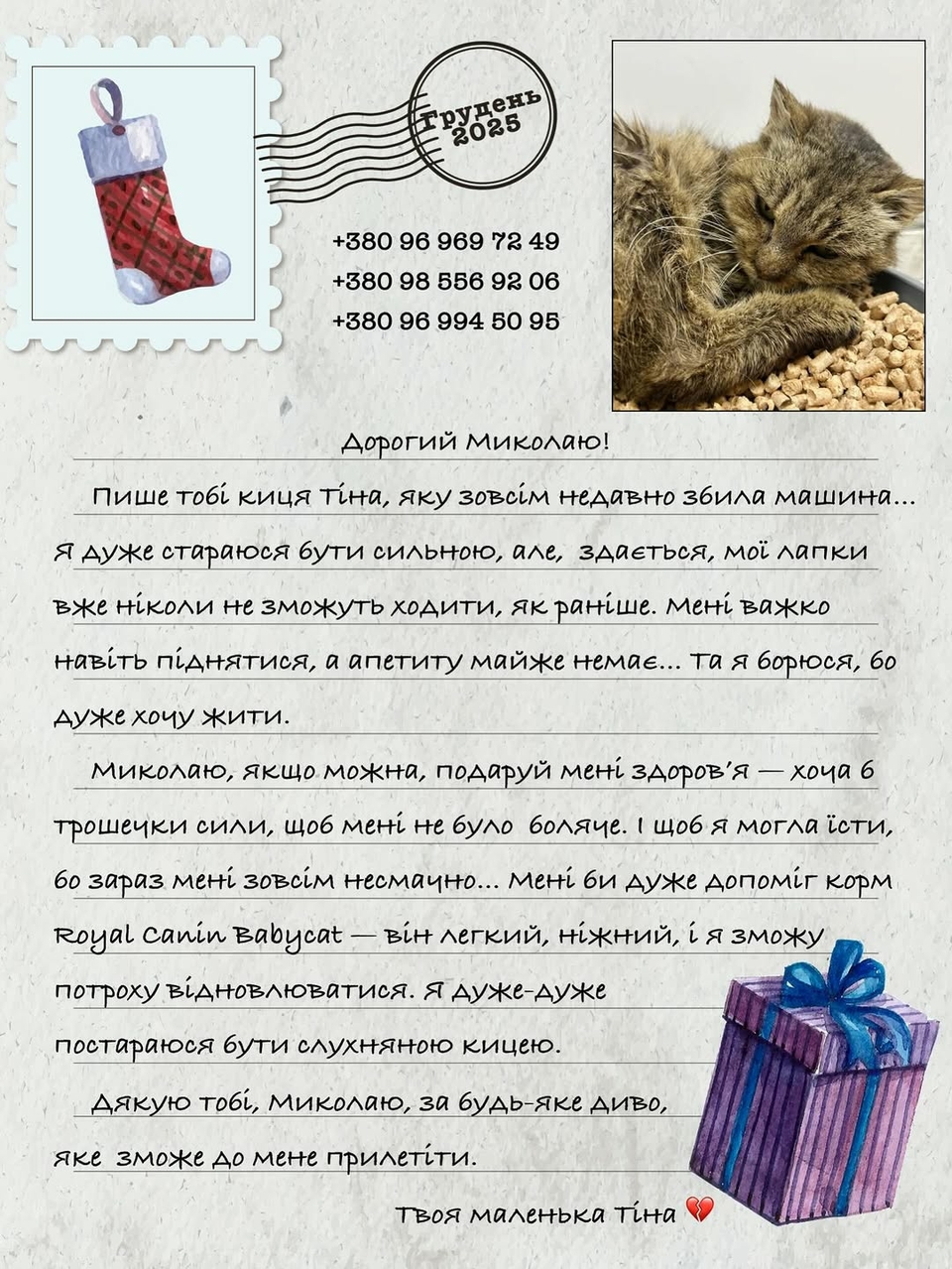 Котики, від імені яких волонтери написали листи до Миколая, наразі перебувають на одному з пунктів перетримки у Кутківцях. Їх понад 30. У кожному листі описані потреби тваринок: ліки, їжа, різні речі.