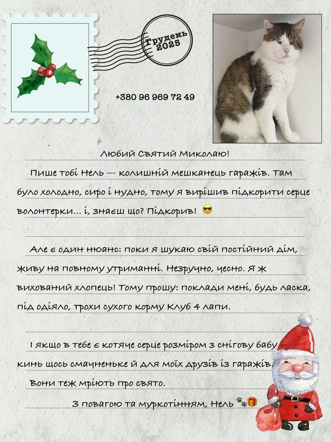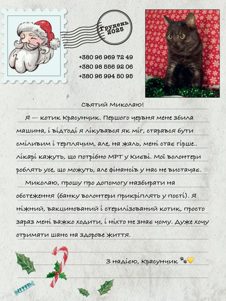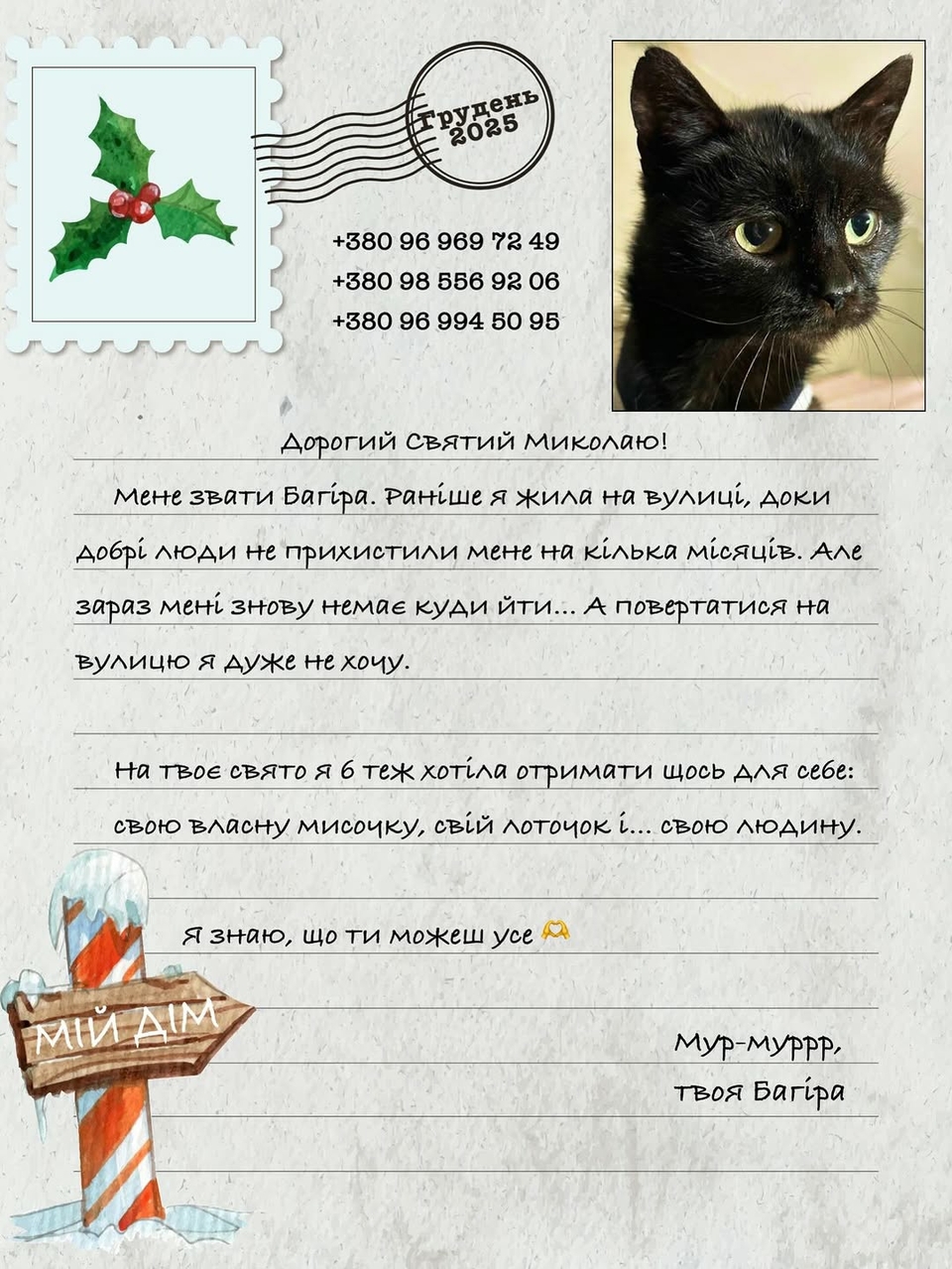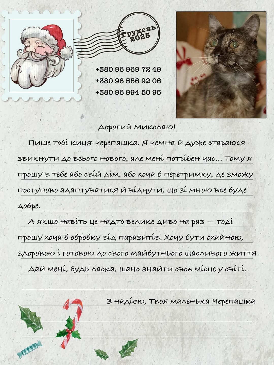 Листи до Миколая від імені котиків поширюють у соцмережах. Таким чином волонтери громадської організації “Ноїв Ковчег” напередодні свята намагаються привернути увагу до безпритульних тварин та просять для них подарунків.
