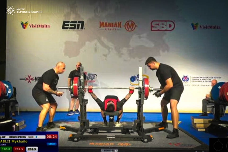 Пожежний-рятувальник з Тернополя Михайло Шаблій днями він представляв Україну на Чемпіонаті Європи з жиму лежачи на Мальті. Про це повідомили у пресслужбі ДСНС області.