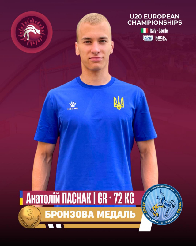 З 30 червня по 3 липня у місті Каорле (Італія) тривав Чемпіонат Європи з греко-римської боротьби серед юніорів (U-20). Бронзову медаль у ваговій категорії до 72 кг виборов Анатолій Паснак — вихованець КДЮСШ з греко-римської боротьби та КУТОР «Школа вищої спортивної майстерності». Борець продемонстрував високий рівень технічної підготовки, силу волі та витривалість, гідно представивши Україну та Тернопіль на міжнародній арені. Про це повідомили у пресслужбі Тернопільської міської ради.