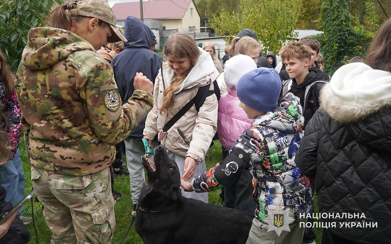 Фахівці кінологічної служби поліції Тернопільщини разом із ювенальною превенцією розповіли дітям про роботу службових собак, їхню підготовку та важливість турботи про чотирилапих друзів