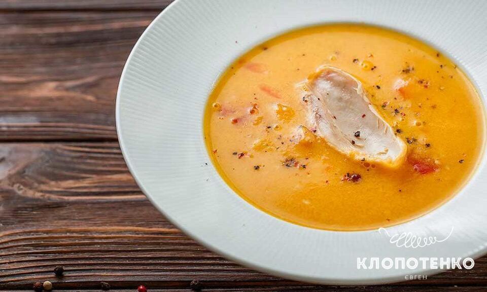 Сирний крем-суп з куркою і томатами