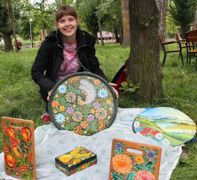 Родом Ольга з мальовничого Трускавця. З «петриківкою» вона познайомилася у Кривому Розі, де кілька років проживала у бабусі. Повернувшись на Львівщину, навчалася у Стрийському художньому училищі. У творчому доробку Ольги – кухонні дерев’яні дощечки, ложки, тарілки, шкатулки, фарфорові вази, металеві підноси та панно, розмальовані петриківським розписом, пише «Сільський господар».