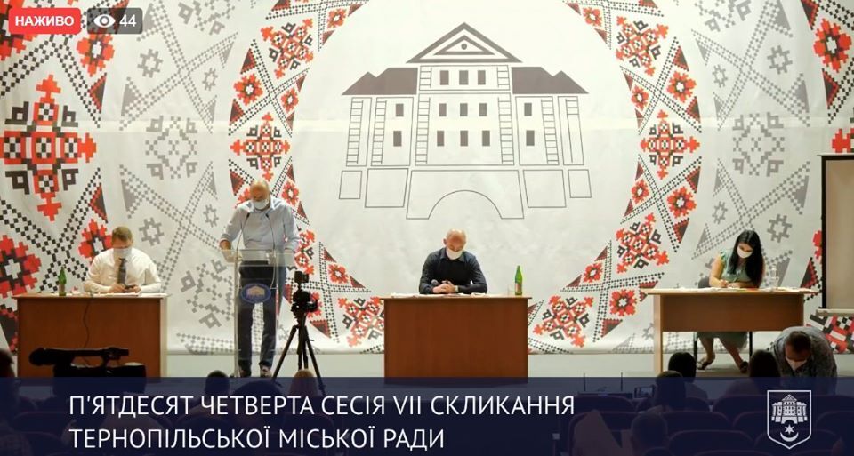 Фото з трансляції сесії на сторінці Тернопільської міської ради у соціальній мережі «Фейсбук»