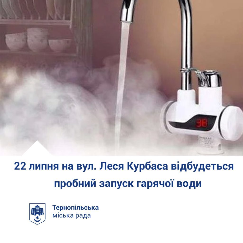 Пробний запуск гарячої води відбудеться 22 липня. Це стосується будинків за адресами: вул. Леся Курбаса, 5, 9, 11.