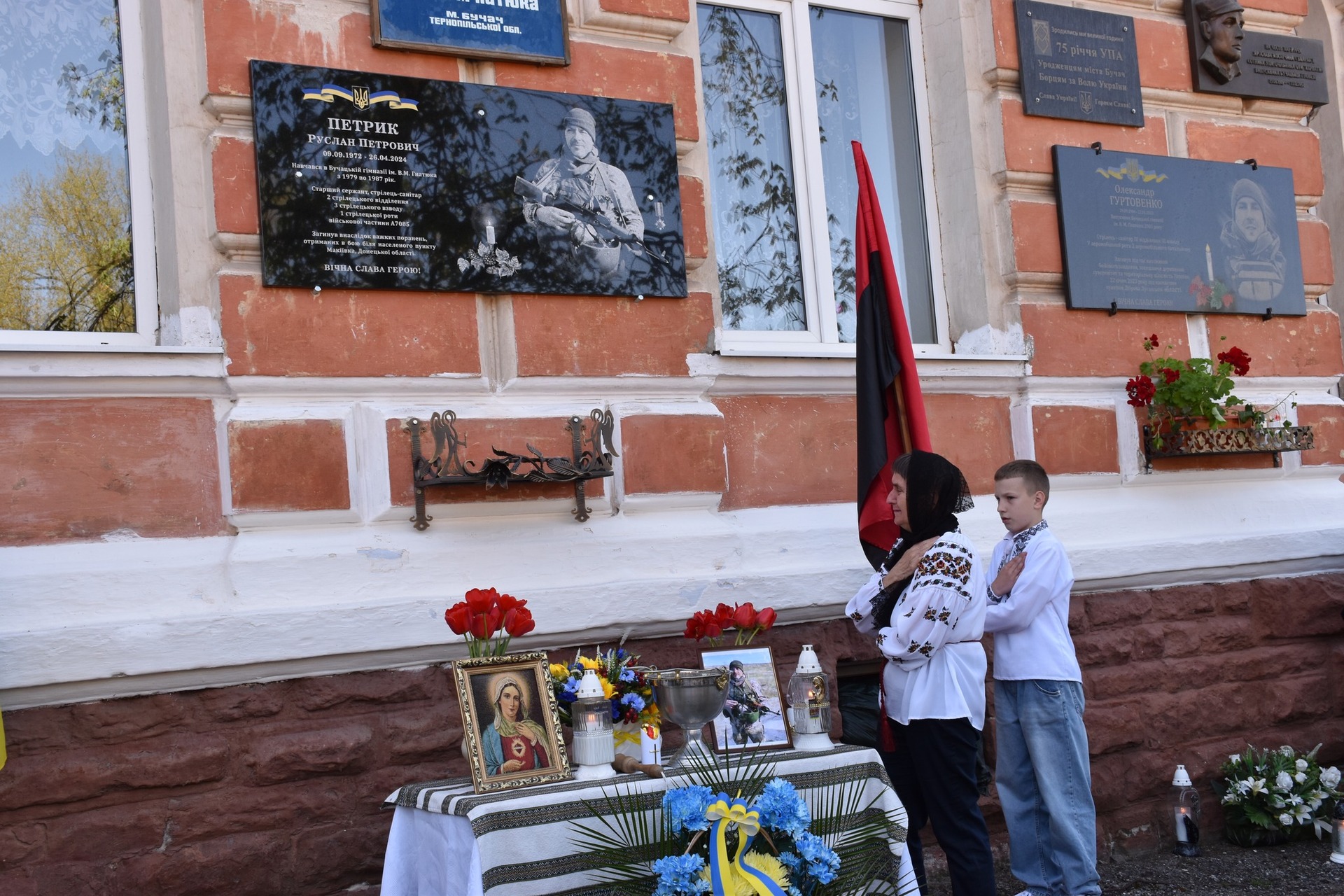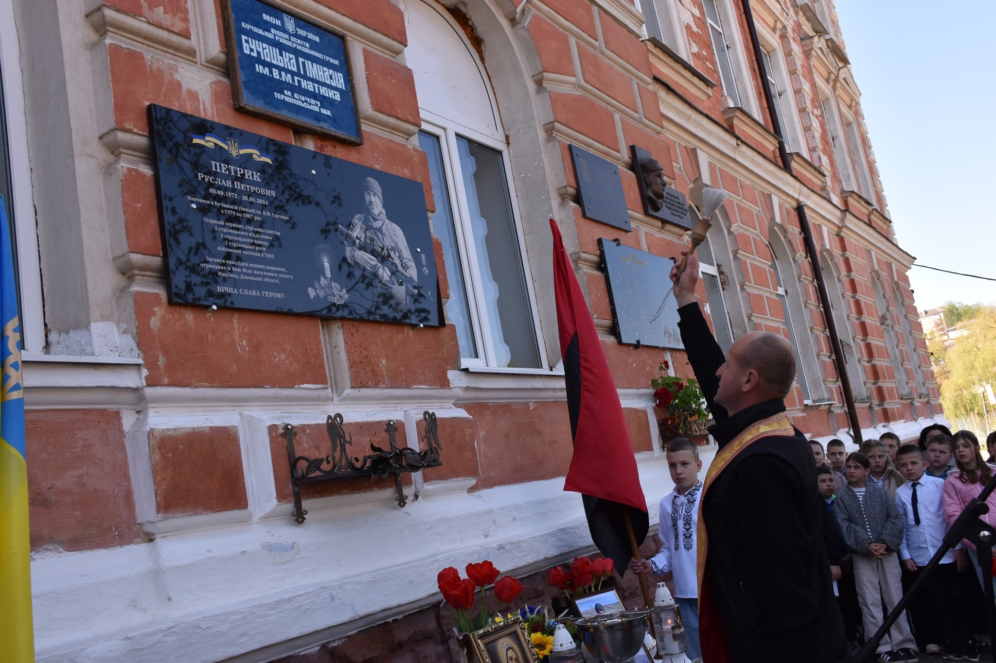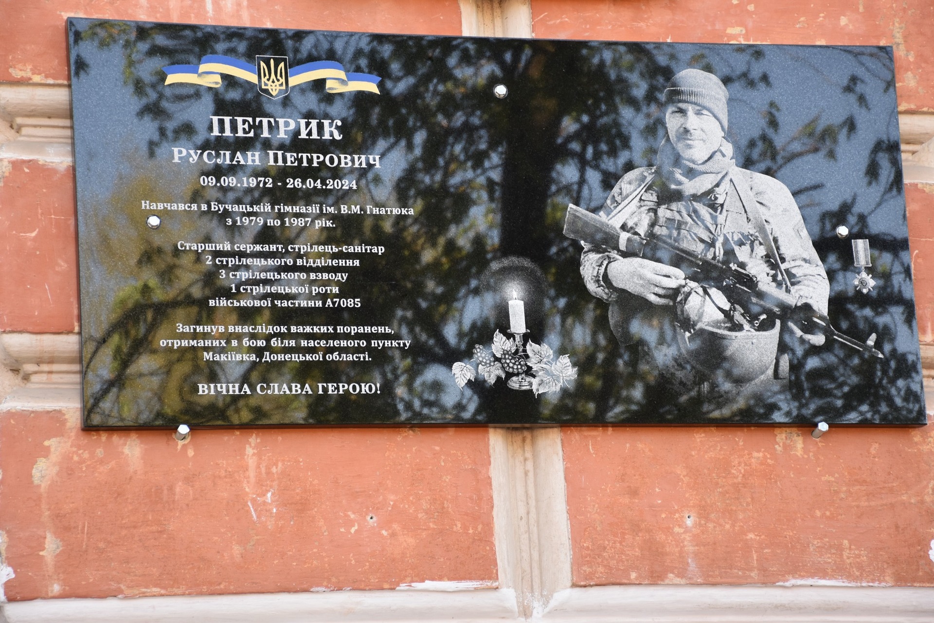 Урочисте відкриття меморіальної дошки на честь загиблого захисника Руслана Петрика встановили 28 квітня у Бучацькій гімназії ім. В. М. Гнатюка. Про це повідомили в пресслужбі Бучацької міської ради.