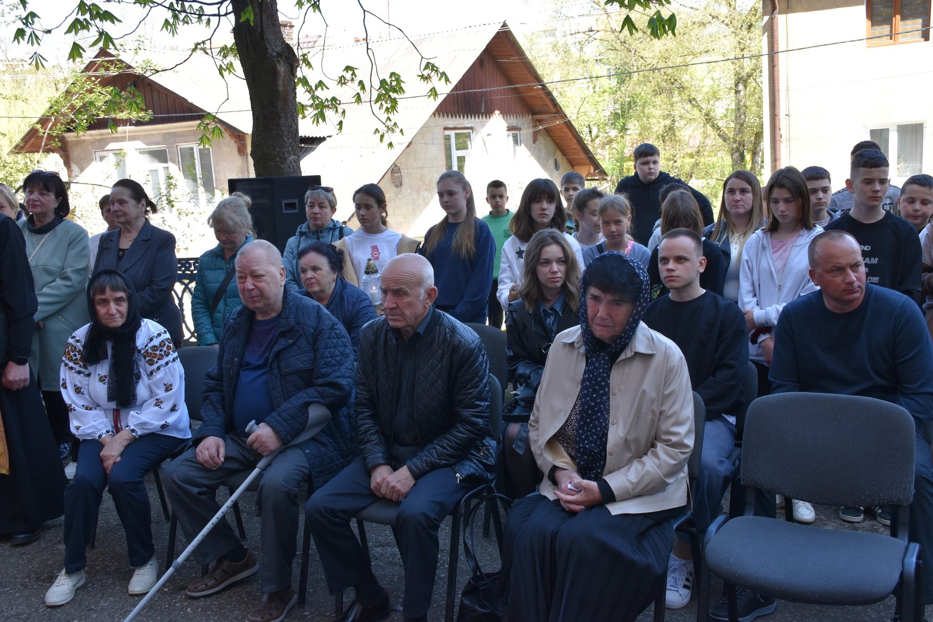 Під звучання Державного гімну України почесне право відкрити меморіальну дошку надали матері та брату захисника.