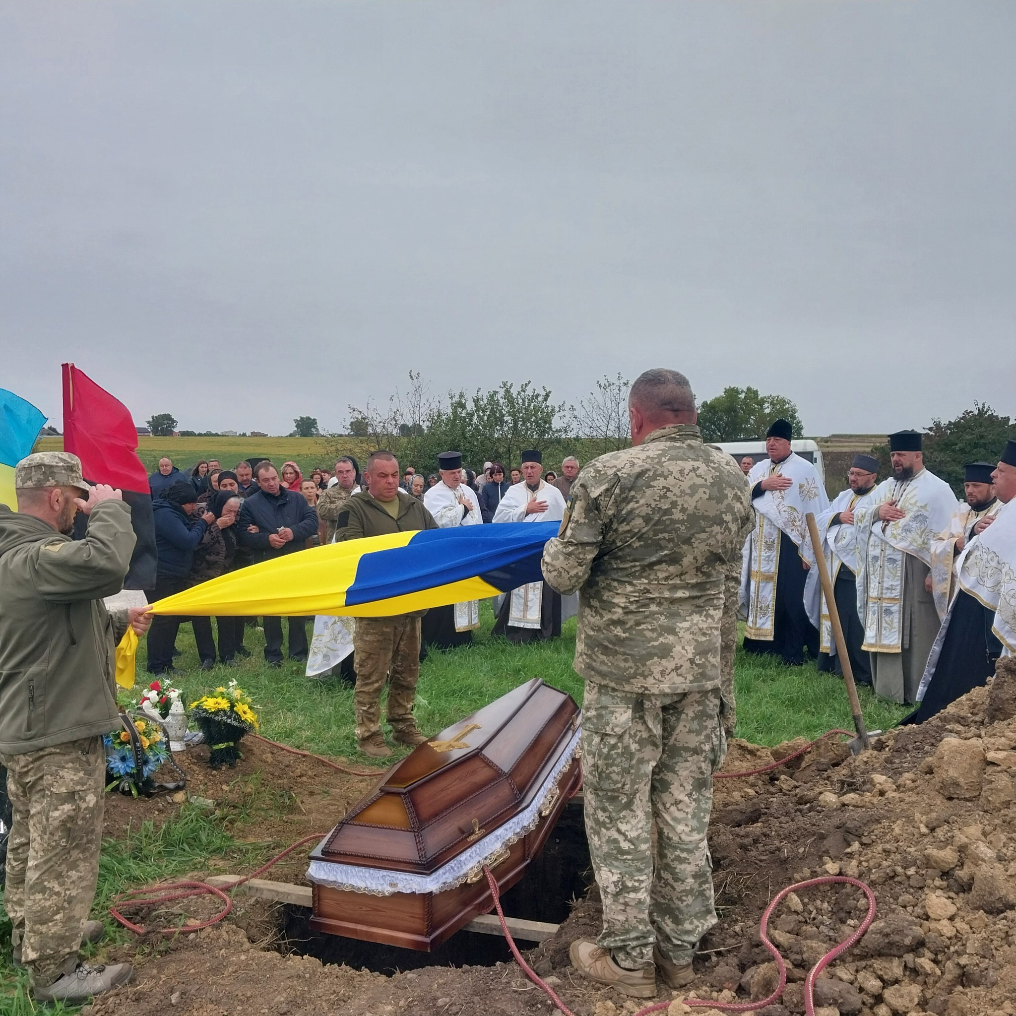 Провести в останню дорогу воїна прийшли рідні, близькі, друзі, сусіди та небайдужі до чужого горя люди.