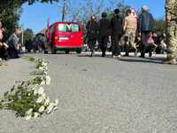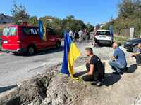 З квітами, лампадками та прапорами односельці на колінах зустріли тіло Героя та віддали шану українському захиснику, який загинув 19 вересня, обороняючи Україну від російських окупантів.