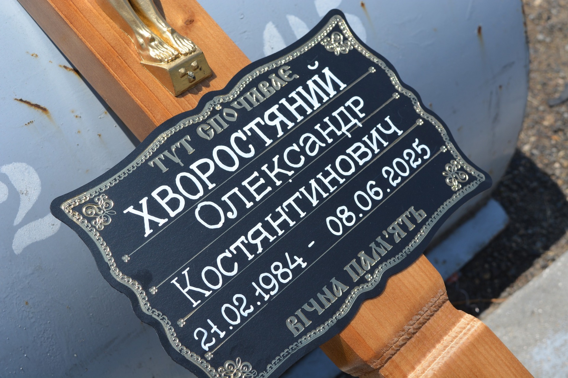 Поховали воїна на центральному кладовищі міста біля тих сміливців, які без вагань стали на захист Батьківщини і віддали своє молоде життя за свободу і незалежність українського народу. Нехай же ім'я Олександра Хворостяного залишиться назавжди світлим спомином у наших серцях, у серцях майбутніх поколінь., – йдеться в повідомленні.