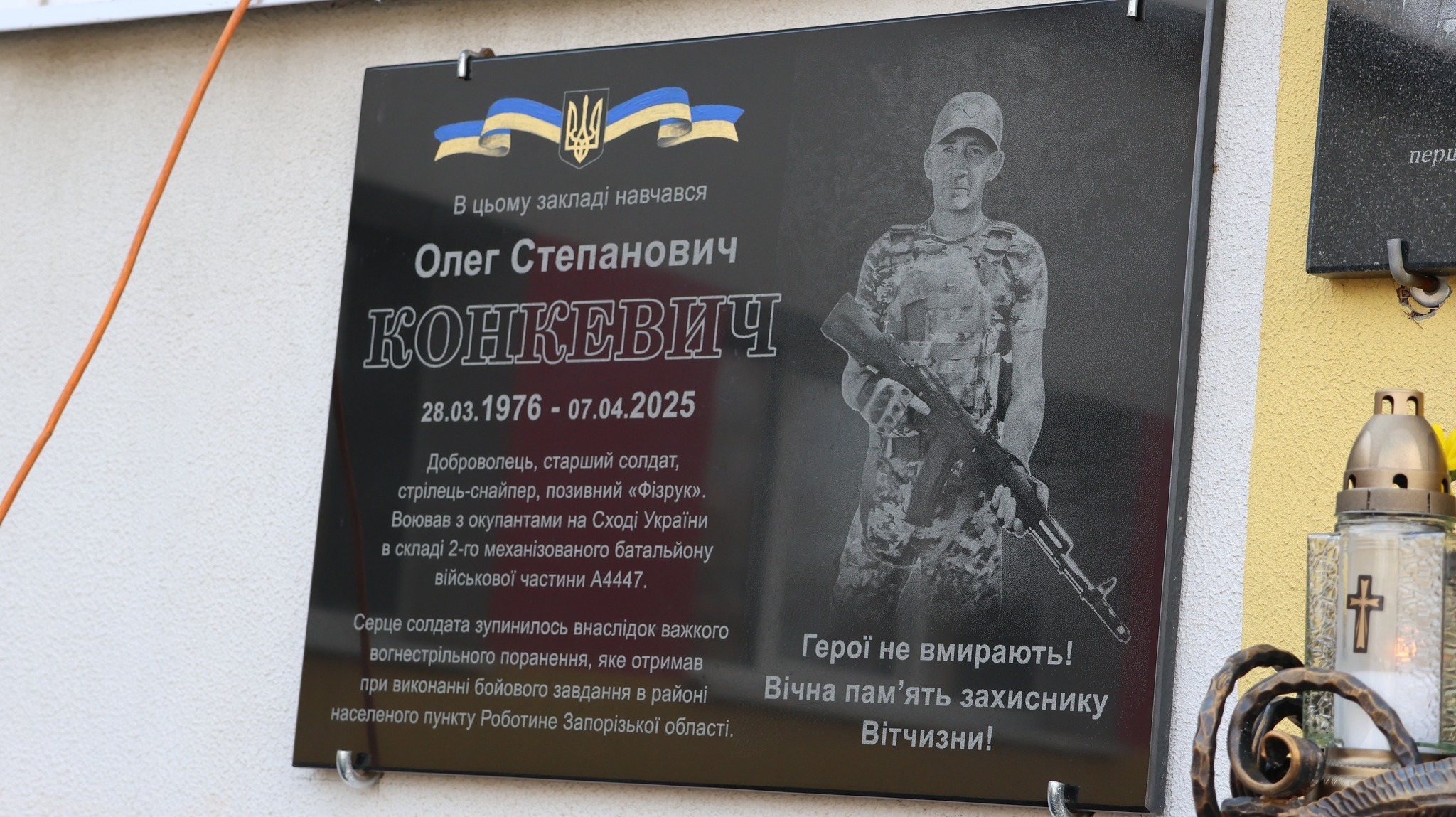 У місті Бучачі на фасаді Бучацького ліцею відкрили та освятили меморіальні дошки на честь загиблих захисників України — Олега Конкевича та Івана Олійника. Про це повідомила Бучацька міська рада - територіальна громада.