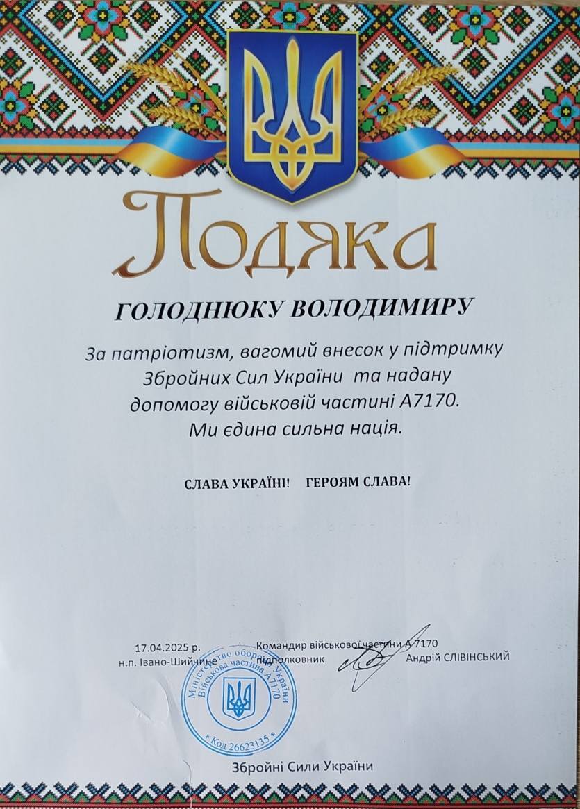 Дякуємо щиро і за експонт і за подяку за волонтерську допомогу для Штабу національного спротиву Збаразького району. Нехай Господь оберігає Захисників України, — йдеться в повідомленні музею.