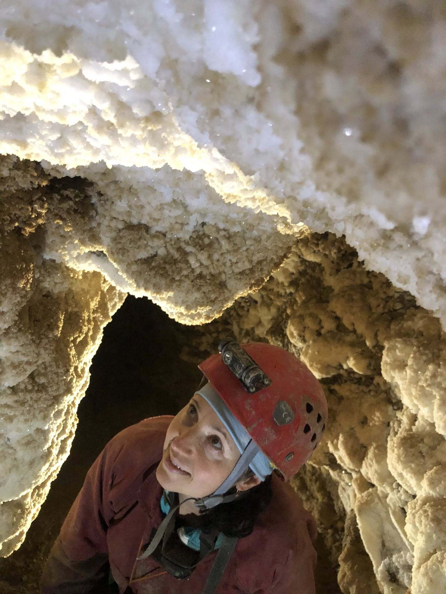 У великих залах та галереях помітні стіни з грубокристалічного гіпсу, а в вузьких та низьких галереях півночі та сходу такого гіпсу дослідники не зустрічали. Ще залишається південний борт печери, але цього разу його детально не обстежували.