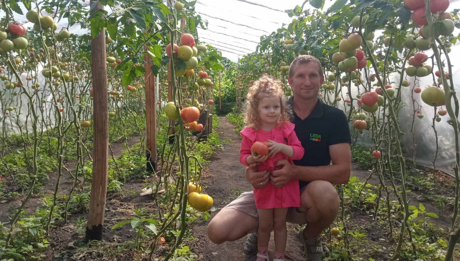 Крім городини, в полі біліють кілька тепличних споруд, змайстрованих цьогоріч власними руками 44-річного Олексія. У них визрівають ранні та середні гібридні сорти помідорів Пінк Хіт F1, Діно F1, Асвон та інші. Вони ранньостиглі, великоплідні, стійкі до різних перепадів температур і розраховані на потреби від початку літа до осені. Є й, так звані, сливочки. Перші соковиті плоди помідорів з’являються у продажу першої десятиденки червня, додаючи до їх асортименту плоди ранньої капусти. У липні є попит на низькорослі сорти помідорів чи сливочок для салатів, а у вересні – для соління, маринування або на сік.