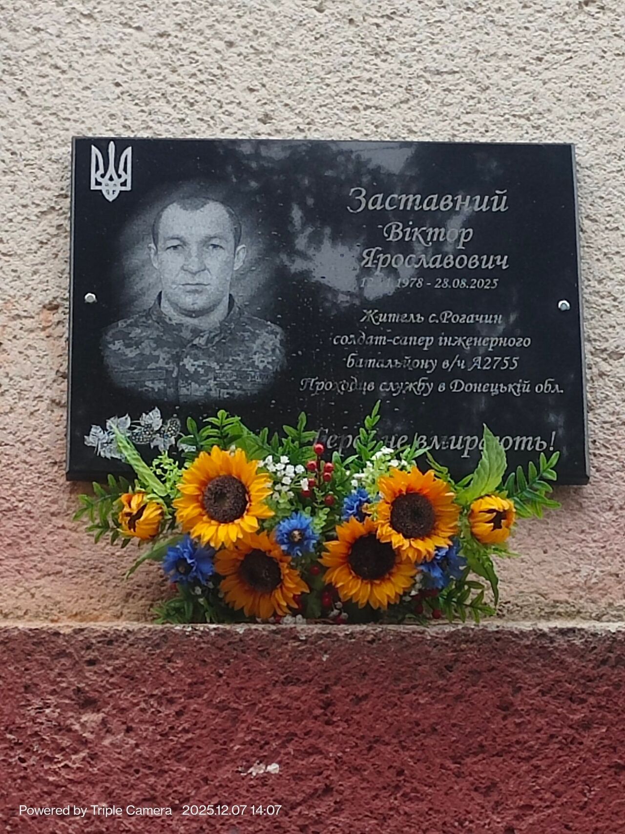 Урочисте відкриття меморіальної дошки на честь Героя Віктора Заставного відкрили днями в Рогачинській школі, що у Нараївській громаді. Про це повідомили у пресслужбі закладу.