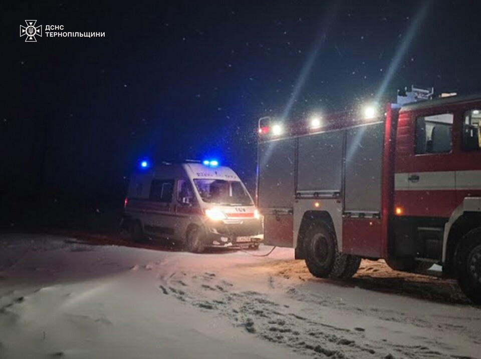 У снігових заметах на Тернопільщині застрягли рейсові автобуси та швидкі (фото)