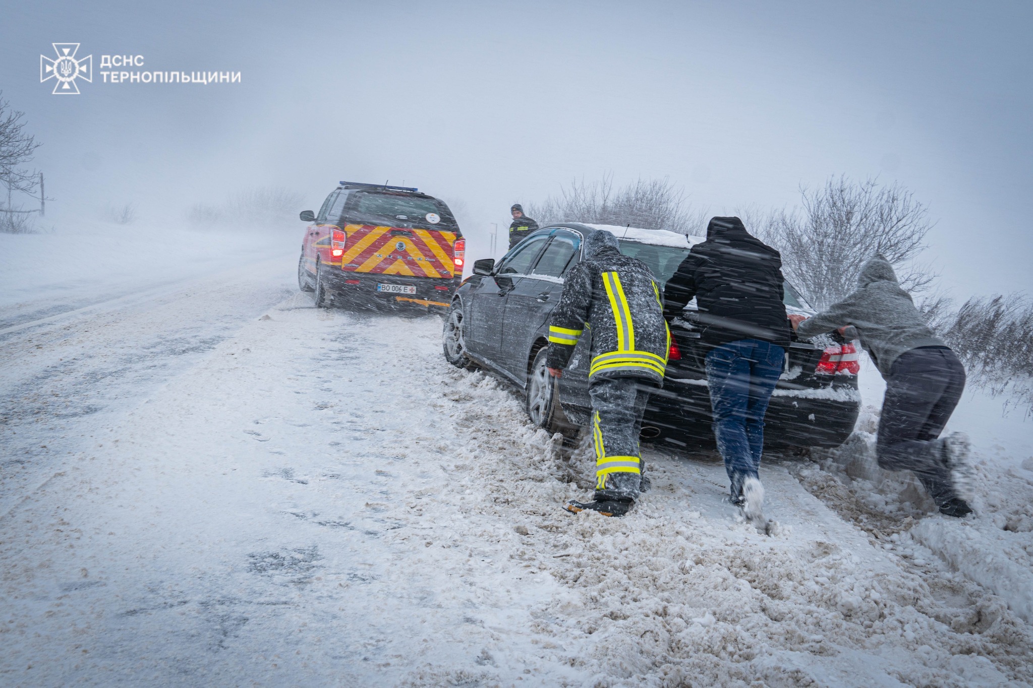 Із снігового замету витягнули легковий автомобіль, у якому перебували 5 осіб, серед них — дитина.