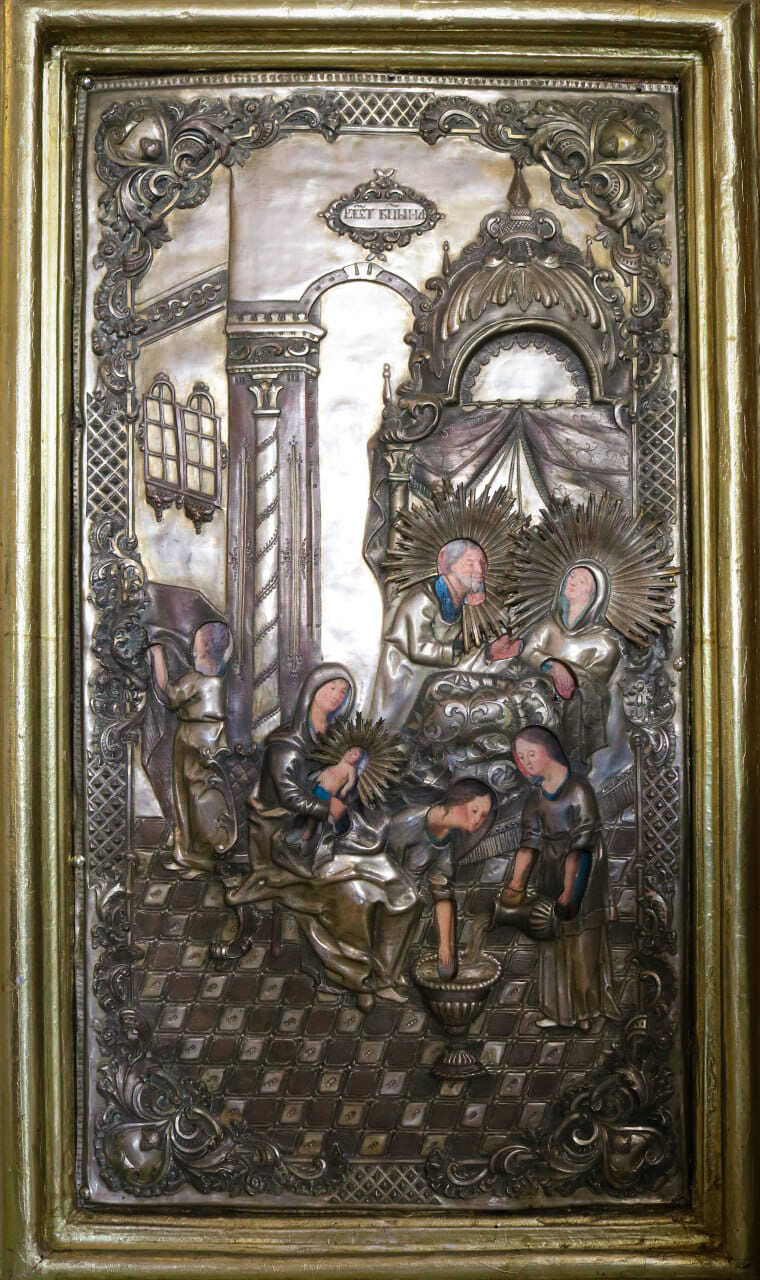 Ікона написана невідомим майстром на дереві та прикрашена металевими (із посрібленням) ризами