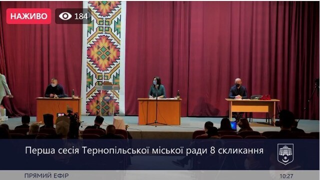 Фото з трансляції сесії на сторінці Тернопільської міської ради у соціальній мережі «Фейсбук»