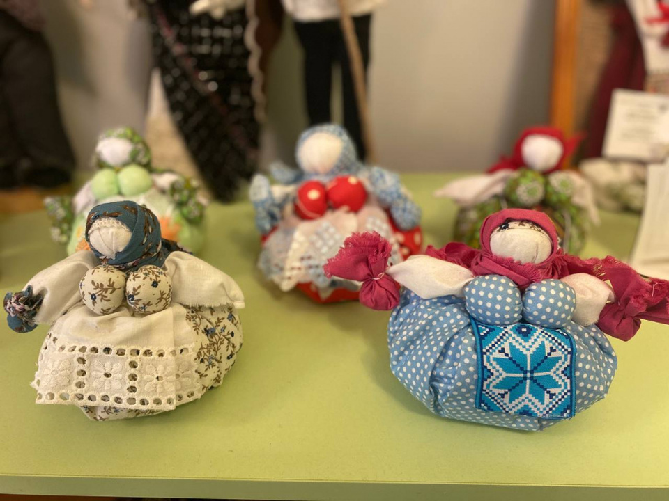 На експозиції представлено ляльки-мотанки громадської організації «Школа борщівської народної сорочки». Всього - понад 50 ляльок