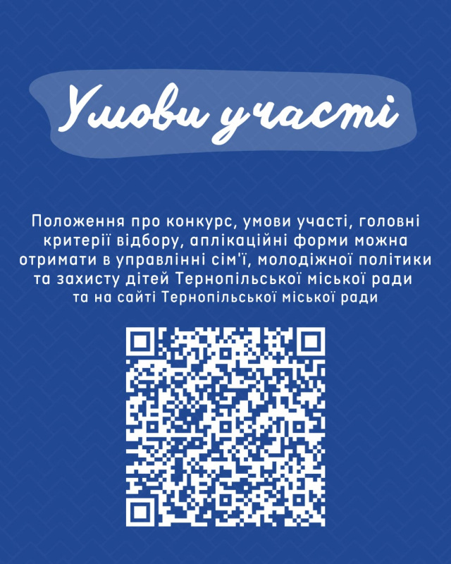 Конкурсну документацію приймає управління сім’ї, молодіжної політики та захисту дітей Тернопільської міської ради у будні з 9.00 до 16.00 за адресою бульвар Тараса Шевченка, 1, кабінет 11.